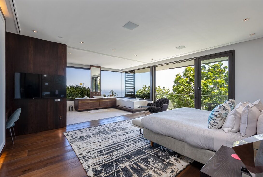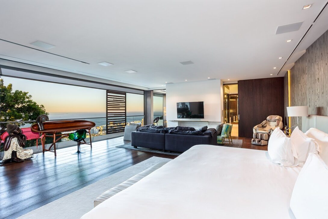The home is fully equipped for comfort and security, with backup power, integrated systems, and high-end finishes throughout. Set within one of Cape Town’s most exclusive residential areas, just minutes from beaches, restaurants, and the Atlantic Seaboard, this Fresnaye residence offers a refined luxury stay defined by architecture, views, and privacy.