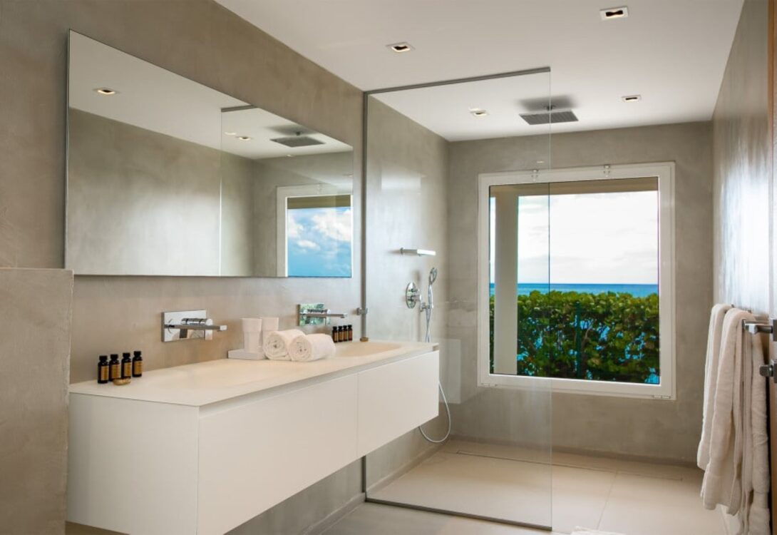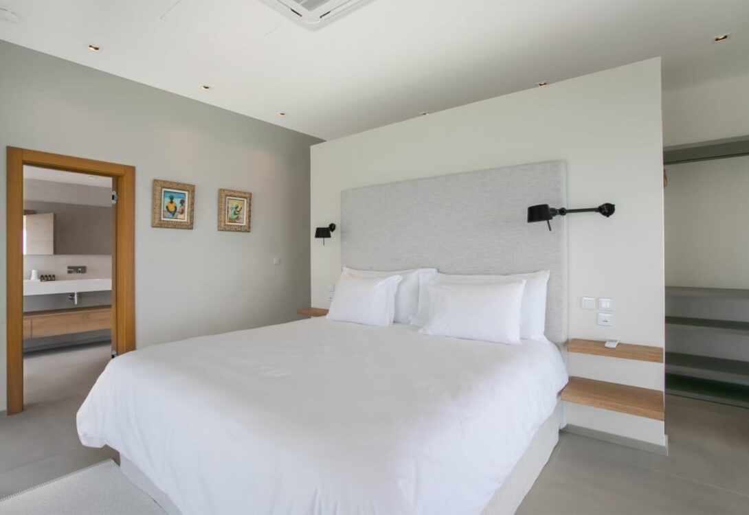 The villa accommodates up to ten guests across five beautifully furnished bedrooms. Three bedrooms are located in the main house, while two additional king-bedroom suites are set within a separate guest house, offering enhanced privacy. All bedrooms feature en-suite bathrooms with double vanities, creating a serene and comfortable retreat for every guest.