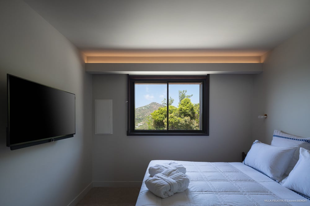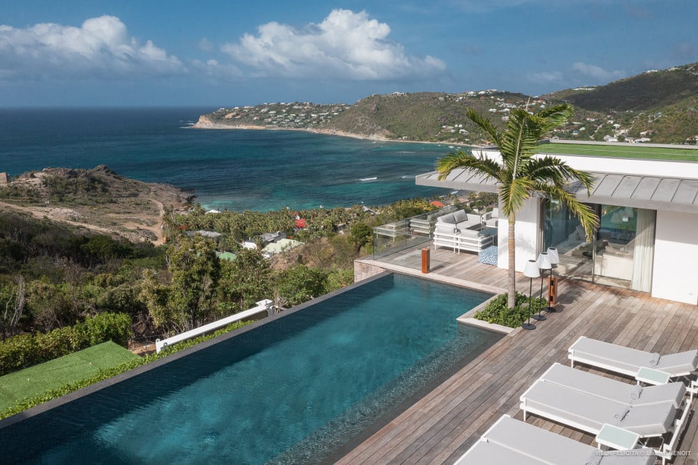 With interiors by famed French designer and architect Jean-Michel Wilmotte, the newly built Villa Felicita is large and luxurious. The luxury rental property is filled with modern conveniences but also elemental in its serene simplicity. Nearly everything is white, and when open air and St. Barth's flowing breezes can take the place of a solid wall, they generally do.