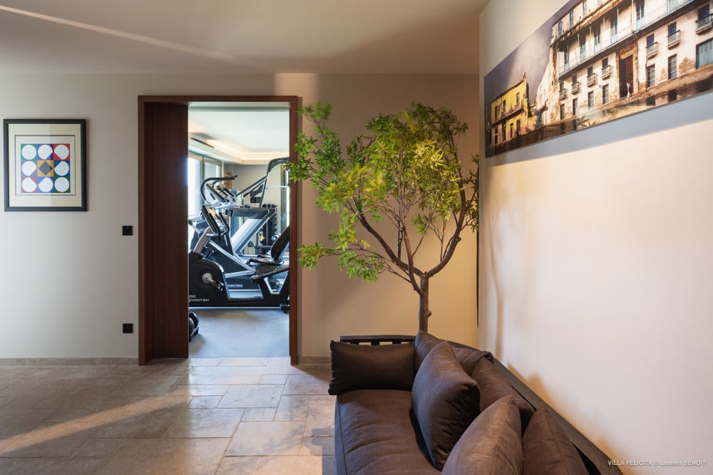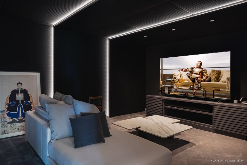Completing the villa are a well-equipped fitness room and a media room. Throughout, the house is managed by an iPad in every room, which controls the curtains, television, air-conditioning, and lights.