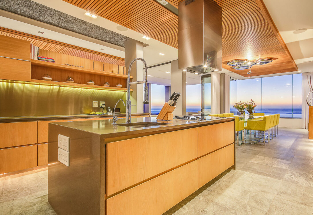 Situated in Camps Bay, the House offers the splendour of beautiful panoramic views, while providing superb comfort and luxury with 5 bedrooms all with ensuite bathrooms. The House boasts a stylish dining room that opens onto a fully equipped kitchen and a separate scullery with gorgeous views of the mountain. Enjoy the morning sea breeze from the lounge that opens up onto a large pool and a back terrace with views of the ocean and mountain.