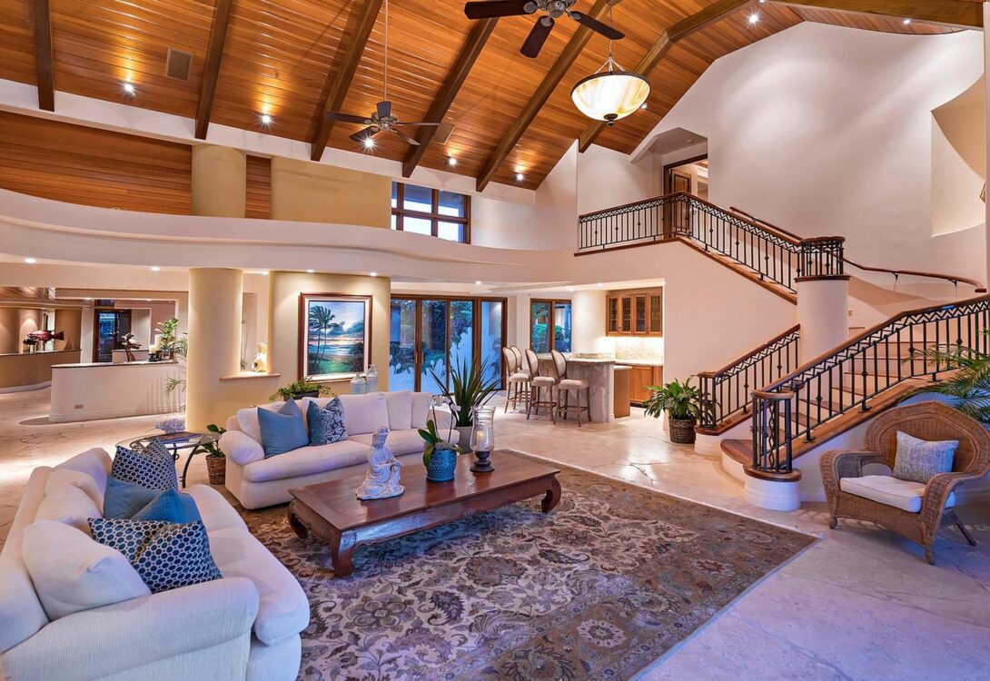 This estate features elegant indoor spaces designed for relaxation, entertainment, and gathering with family and friends.